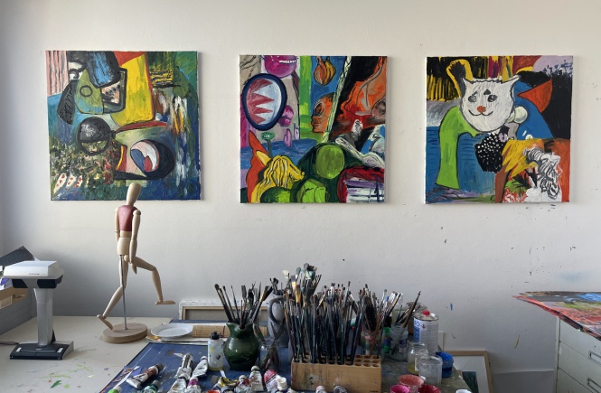Mythologische Figuren, christliche Ikonografien und moderne Szenarios erscheinen als Versuchsanordnungen: Sie verdeutlichen, wie narrative Muster, kollektive Imaginationen und persönliche Projektionen ineinandergreifen. Ebenso eröffnen sie fast surreale Bildräume. Dort beginnt die Freiheit des Experiments: das Erfinden von Räumen, in denen Welt nicht abgebildet, sondern hervorgebracht wird.