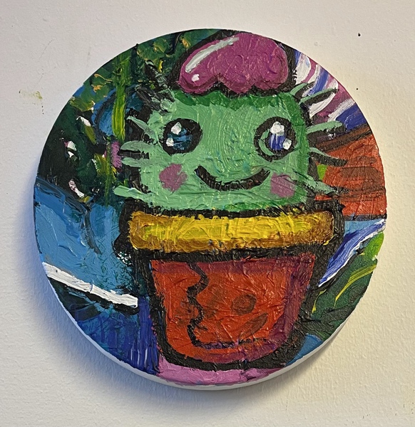 Die Cuties scheinen zunächst einen Gegenpol zu markieren. Sie treten frontal auf, mit klarerem Umriss, mit Blicken, die zurückblicken. Sie lächeln, strahlen, leuchten. Doch dieses Niedliche ist kein naives. Es ist übersteigert. Die Augen zu groß, das Lachen zu breit, die Farben zu laut. Die Figur wirkt wie eine Verdichtung all jener Fragmente, die in den BildWelten noch verstreut waren.