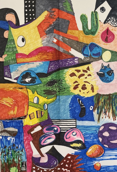 In meinen Bildwelten begegnen sich Figuren, Zeichen und Farbflächen, die unterschiedlich fragmentierte Sichtweisen darstellen. Organische und anthropomorphe Splitter lagern sich aneinander, ohne sich je ganz zu stabilisieren.