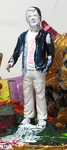 Ein männlicher Zeitgenosse mit dunklem Jackett und heller Hose posiert in dieser apokalyptischen Szenerie fast unbeteiligt, so als ginge ihn das alles nichts an.