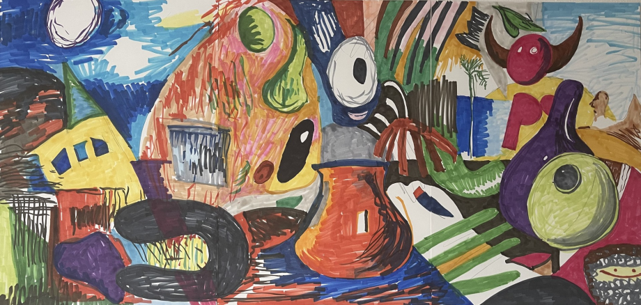 Diese Marker-Zeichnungen entstehen im Spannungsfeld zwischen digitaler Künstlichkeit und analoger Expressivität. Ich "übersetze" algorithmische Bildideen in eine lebendige Formensprache – spontan, körperlich, unmittelbar. Dabei trifft die Präzision des Codes auf die Geste des Markers, die maschinelle Berechnung auf menschliche Intuition.
