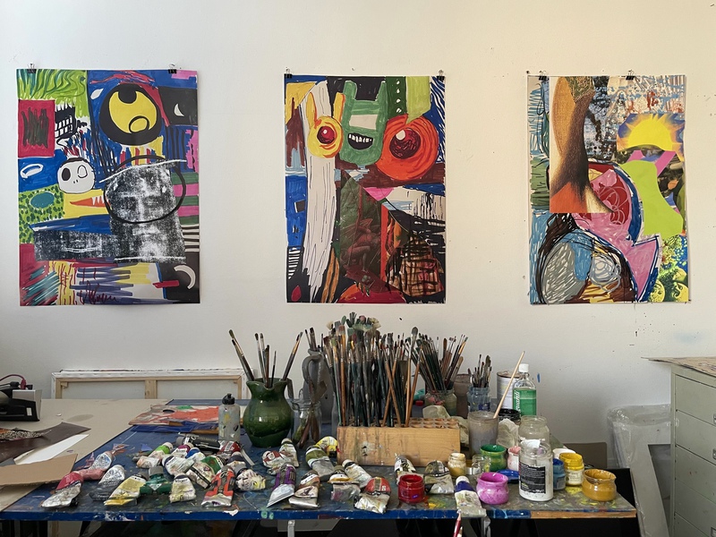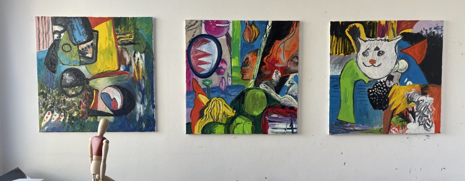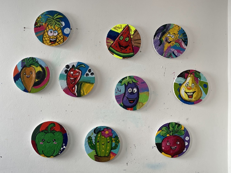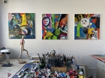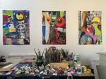 Die Themenschwerpunkte sind meistens in Gemälde und Collagen unterteilt, in neuerer Zeit auch in Marker-Zeichnungen und Aquarellkreide-Arbeiten.