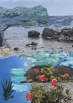 Diese Serie von Fotocollage-Übermalungen nähert sich der Landschaft der griechischen Inseln nicht nur als Ansicht, sondern als Erinnerung, als Schichtung von Eindrücken. Ich habe dazu eigene Fotos von Küstenlinien, Felsen, Wasseroberflächen und Vegetationen zerschnitten, neu gefügt und anschließend mit Malerei überarbeitet. So entsteht ein Bildraum, in dem sich dokumentarische Wirklichkeit und subjektive Wahrnehmung überlagern.