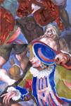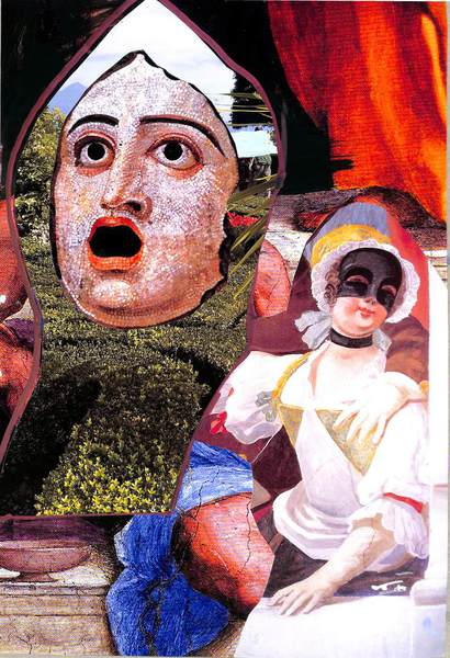 Zentral in der Collage sind zwei Figuren aus der Comedia dell'arte.