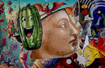Die Ikonen der Kunstgeschichte verlieren dabei durch die Überarbeitung und Fragmentierung zuerst ihre Aura und werden zu offenen Bildräumen, in denen Humor, Irritation und spontane malerische Gesten Platz finden. Damit findet aber auch eine Re-Auratisierung statt. So begegnet Hochkultur Comicästhetik, historische Porträts treffen auf farbliche Explosionen und absurde Details.