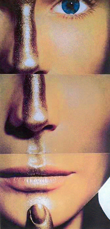 Besonders auffällig ist dabei die intermediale Spannung zwischen Malerei und Collage. Während die gemalten Porträts in expressiver Manier die individuelle Präsenz der Dargestellten betonen, konterkarieren die Collagen diese Präsenz mit einer hypermedialen Zersplitterung des Körpers und des Gesichts. Die „Schönheiten“ verlieren ihre Kontur, sie werden überlagert, fragmentiert, durchkreuzt von Farbe, Form, Geschichte. Eine solche Ästhetik hat insbesondere der späte Emmanuel Levinas unter dem Aspekt der Obliteration entwickelt.
