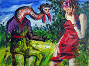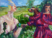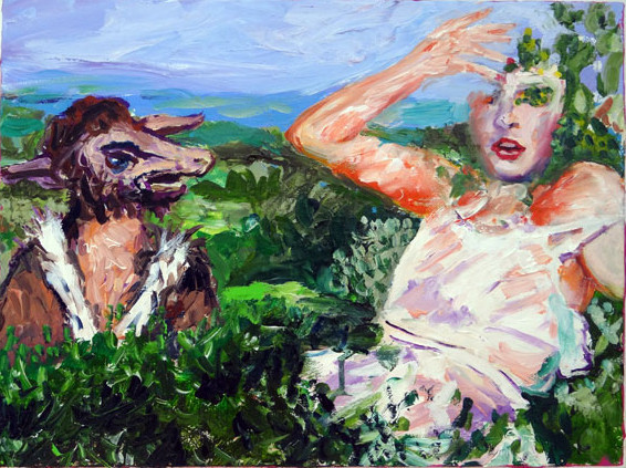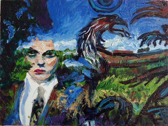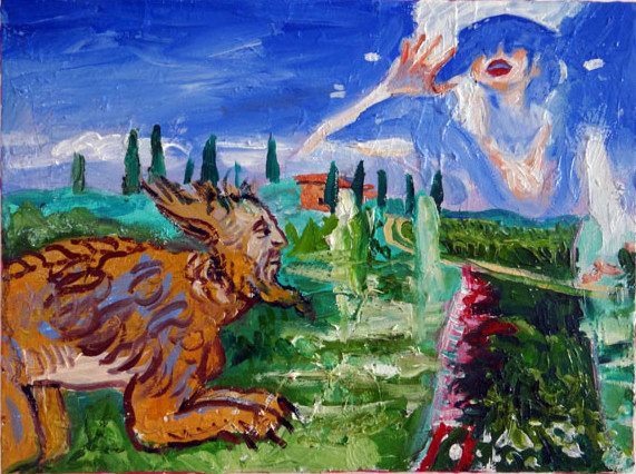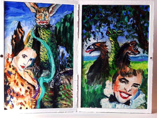 Die Monster der Vormoderne vermögen das Bedrohliche und Unheimliche auszudrücken und erscheinen in meinen Gemälden der Serie „Die Schöne und das Biest“ nicht in ihrer heutigen high-tech digitalisierten Hyperrealität, sondern als etwas ironisches Bild mit all seinen Verweisungscharakteren.