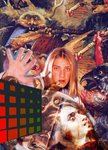 Inmitten dieses Gewirrs: eine realistische Schneelandschaft, durchzogen von Spuren eines Skifahrers. Das moderne Motiv der Freizeitgestaltung erscheint grotesk deplatziert in diesem dramatisch-symbolischen Kontext.
