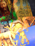 Im mittleren Altarbild von Roger van der Weyden wägt der hl. Michael (unten in der Collage) die Seelen (als "Psychostatus"), die sich nach christlicher Vorstellung dem Jüngsten Gericht stellen müssen und die entweder in die Hölle oder ins Paradies geschickt werden.